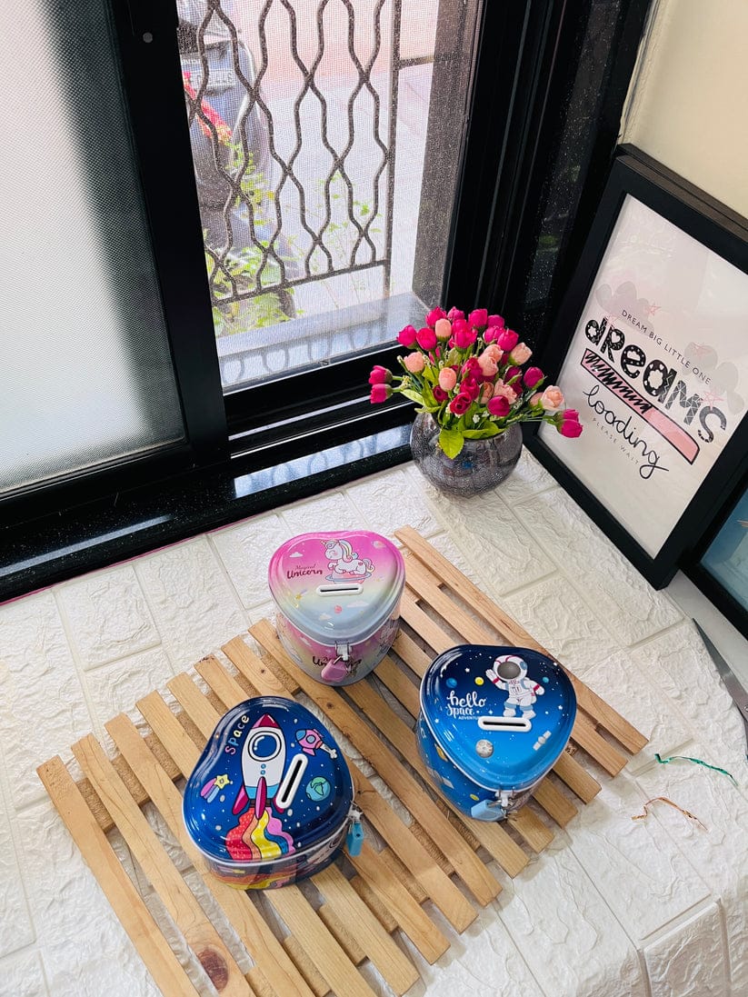 A charming heart-shaped money bank designed to make saving fun and meaningful. Perfect for teaching children the value of money or as a thoughtful gift for loved ones. Features a secure coin slot and removable base for easy access to savings. Durable construction ensures long-lasting use. Ideal for bedside tables, desks, or shelves as both a practical savings tool and decorative accent.